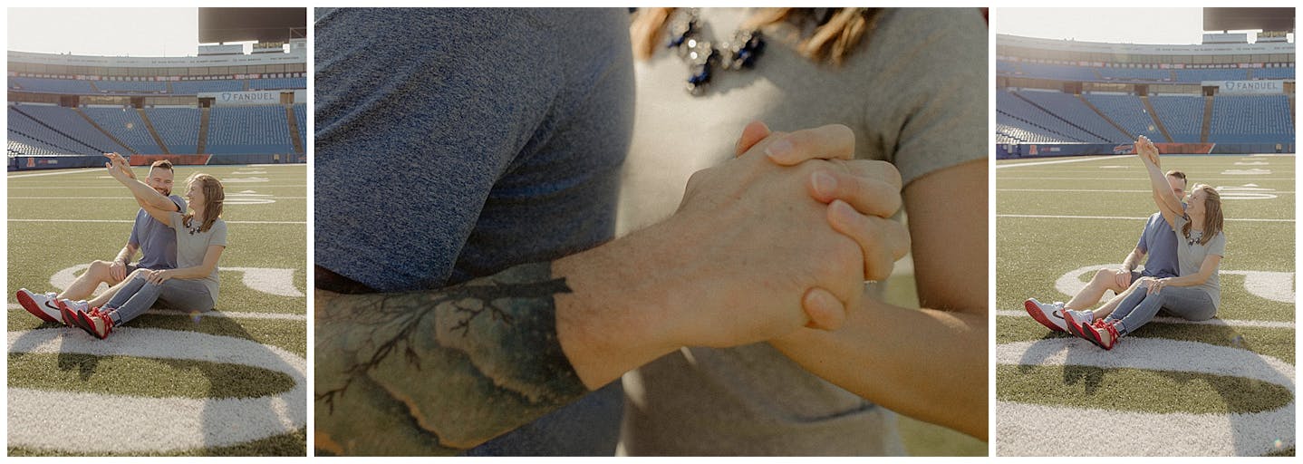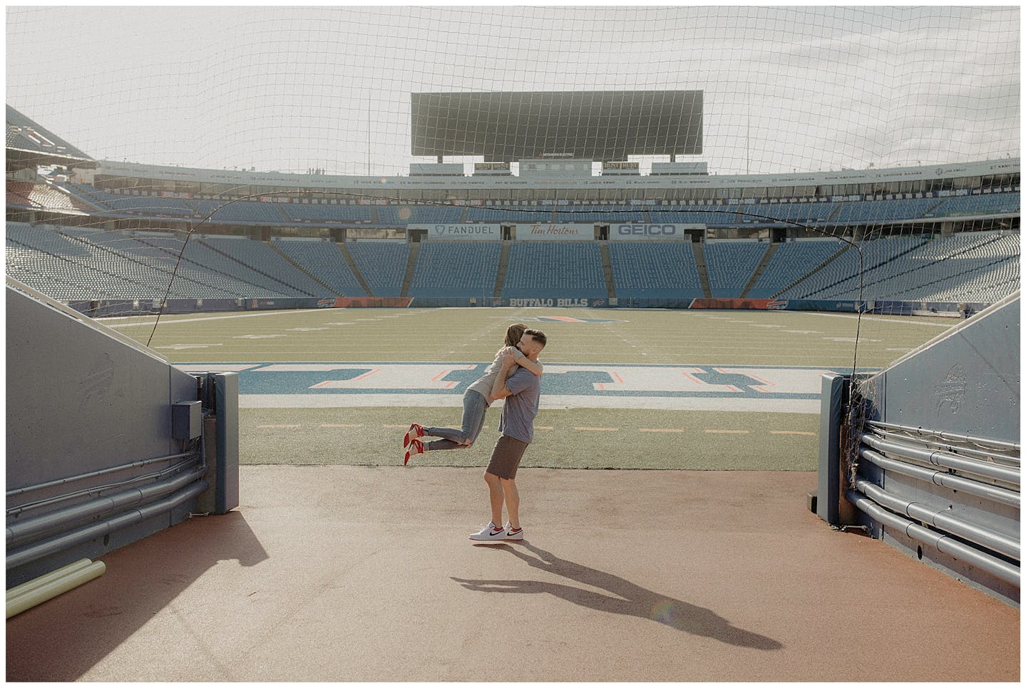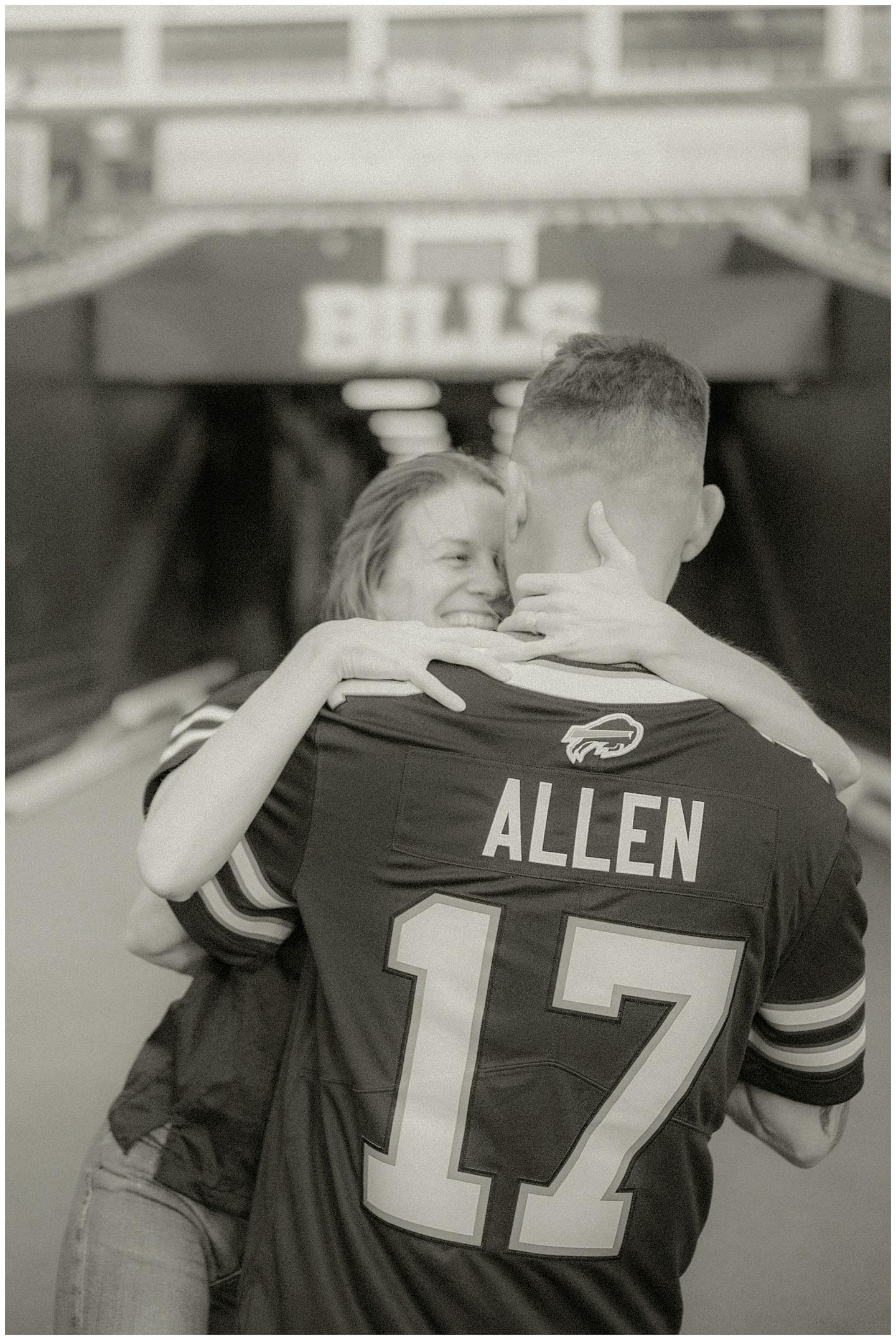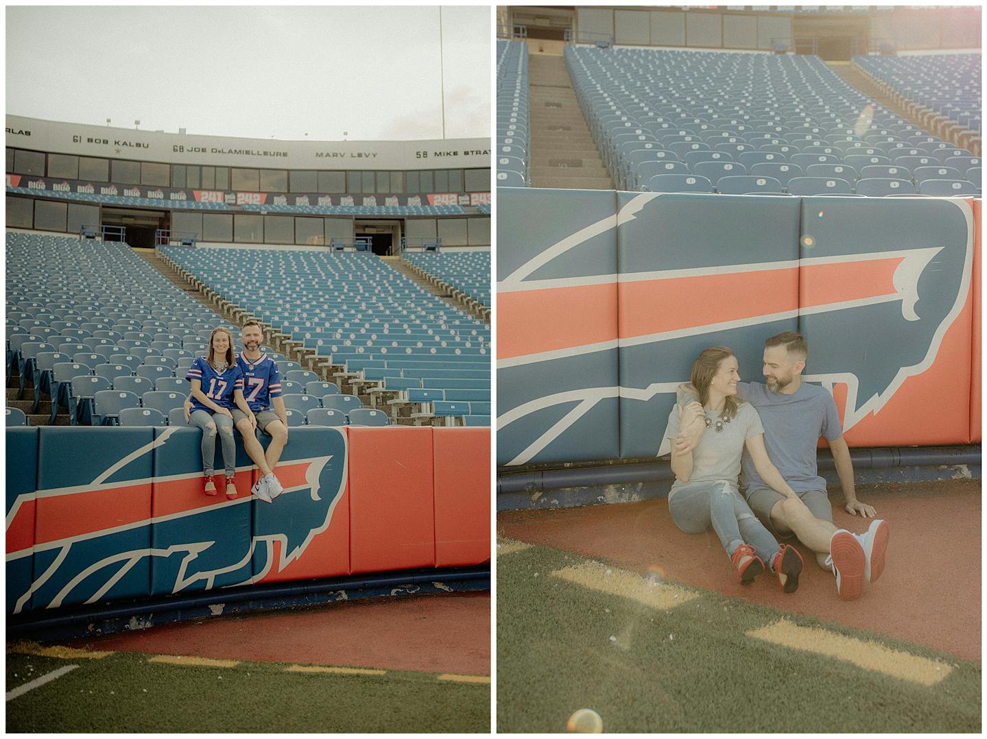 I have to say this session was a first for all of us. Jenna and I went back and forth on what to do for her and fiancé Adam's engagement session. They both wanted something unique and memorable. After a few emails back and forth, Jenna mentioned how cool it would be to do their session at Highmark Stadium where the Buffalo Bills play (for anyone reading this who may be unfamiliar with Western New York). Jenna reached out to the parties that be and scheduled a private hour for their photos.